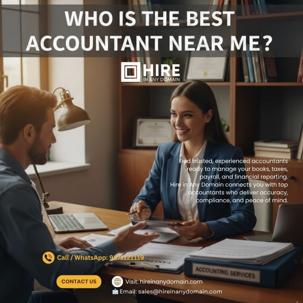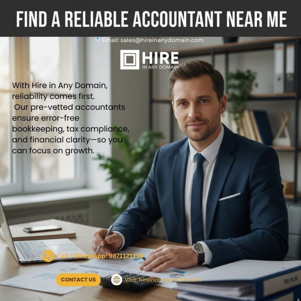Whether you’re looking for an accountant near me, a bookkeeper near me, or want to Hire Financial Expert, Hire in Any Domain connects you with trusted professionals who help your business grow profitably.